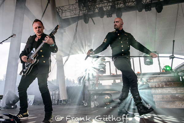 Bei einsetzenden Dämmerung betraten die Mannen von :: EISBRECHER :: die Bühne. Der Käpt’n, Alexander Wesselsky, spähte durch sein Fernglas in die Menge hinein, die er selber im Laufe des Tages öfter durchquert hatte, um sich auf ein Schwätzchen einzulassen oder sich für ein Fan-Foto zu präsentieren. Mit wirklich fetter Show und ein paar fliegenden Eisbären ging so auch der Samstag zu den Tönen von Ti Amo zu Ende.