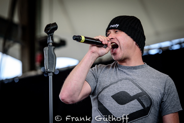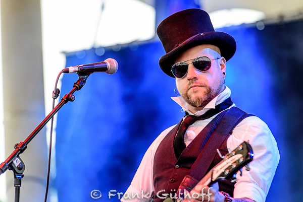 :: FRANK THE BAPTIST :: im Anschluss hatten es schon etwas besser. Der Regen unterstützte die Band kräftig und trieb das Publikum, bis auf wenige Ausnahmen, unter das Dach der Bühne.