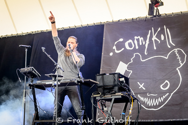 :: .COM/KILL :: ließen dann den Regen hinter sich. Energiegeladener Elektro-Sound, deutlich härter als bei Diary Of Dreams, brachte dann auch passend zum Wetter die Gemüter zum strahlen. Adrian Hates und Gaun:A von DoD überzeugen ganz klar mit ihrem „Nebenprojekt“.