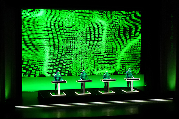 KRAFTWERK spielen ein Very-Best-Of Set und berücksichtigen dabei alle Klassiker. Die Setliste ist einfach nur großartig! Zur Musik gibt es natürlich die 3D Visualisierungen. Die 3D-Brille war leider ziemlich unbequem, da viel zu groß und die 3D-Technik nicht ganz optimal. Ein 3D Erlebnis, wie man es aus dem Kino her kennt, war diese Show nicht. Zu Beginn und zum Ende konnte man kurz einen Surround-Sound vernehmen, generell während der Show gab es diesen nicht. Die ergrauten vier Operator Ralf Hütter, Fritz Hilpert, Henning Schmitz und Falk Grieffenhagen agierten eher behäbig, während der Gesang von Ralf Hütter gelegentlich unter einer gewissen Kurzatmigkeit litt. Mag dem Alter oder der täglichen Doppelbelastung geschuldet sein und tat der Show keinen Abbruch.