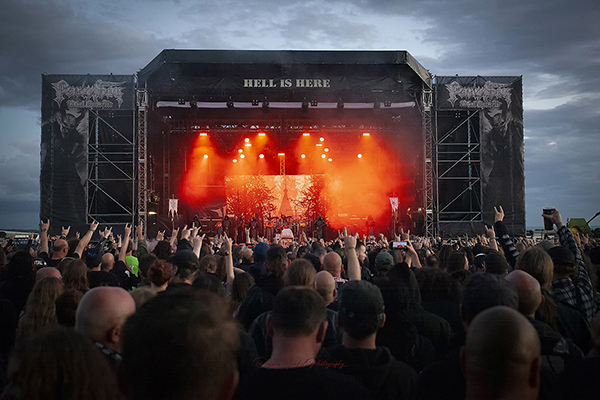 [Seb] Dang it, :: INCANTATION :: wollte ich eigentlich anschauen, aber es fing just, als ich mich zur Bühne aufmachen wollte, dermaßen an zu schütten und (nachdem sich der Wind schon den ganzen Tag über aufgebaut hatte) zu wehen an, dass der Auftritt der US-Amerikaner für mich im wahrsten Sinne des Wortes ins Wasser fiel. Der im Camp normalerweise erstaunlich gute Sound wurde leider überwiegend weggeweht, so dass außer Schlagzeug und Vocals kaum etwas bei uns ankam. Schade, dabei war das eine der wenigen Death-Metal-Bands des PSOA die ich “aktiv” sehen wollte.