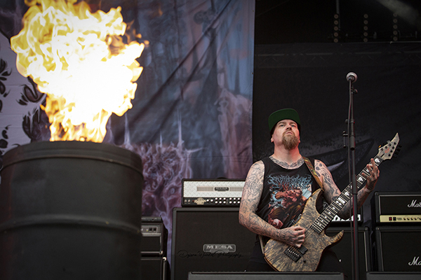 [Seb] :: BEHEMOTH :: haben bei mir seit ihrem legendären Tour-Abschluss in der Kölner Essigfabrik (Fuck, das ist wirklich schon acht Jahre her? Wo ist die Zeit geblieben...) einen Platz unter den besten Live-Bands die ich je sehen konnte, und das obwohl die Polen ansonsten nicht einmal in meiner Top Ten landen würden. Fast genau so lange wie dieses Konzert ist der letzte BEHEMOTH-Auftritt beim PSOA her, was Sänger Nergal mehrmals zum Anlass nahm zu betonen wie gerne die Band auf diesem Festival spielt. Auch ansonsten wie üblich nicht auf den Mund gefallen (zum 33-Jährigen Bestehen der Band merkte er an, “We’ve now officially outlived fucking Jesus Christ”, an anderer Stellle bat er mit “clap your hands you fucking lazy cunts” freundlich um mehr Publikumsbeteiligung) war Nergal wie immer das Zentrum der gewohnt bombastischen Live-Show. Am Ende habe ich keinen blassen Schimmer mehr gehabt wie viele unterschiedliche Kostüme zum Einsatz kamen, sechs mindestens?